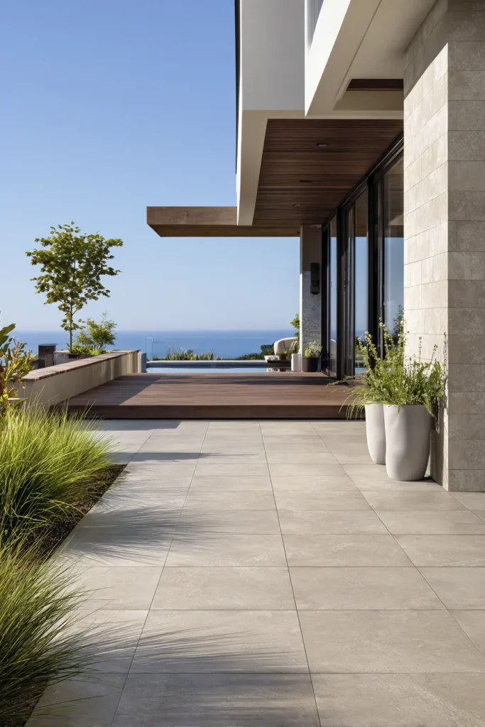 The physics is straightforward: dense ceramic materials absorb daytime heat slowly, then release it gradually after sunset—extending comfortable outdoor hours into early evening without auxiliary heating. Specify 20mm thick pavers in honed (not polished) finishes to avoid glare while maximizing slip resistance in wet conditions.
