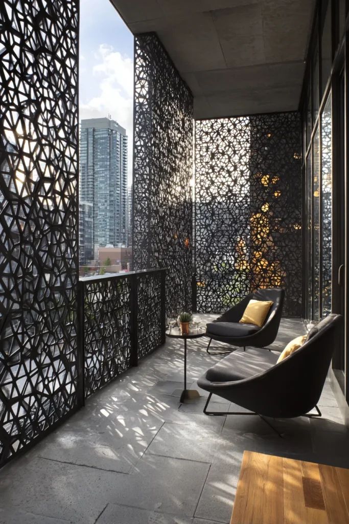 Perforated metal panels with 40% open ratios reduce wind velocity by 60-70% without creating the claustrophobic enclosure that solid barriers impose—critical for high-rise apartment patios where wind speeds can render outdoor space unusable 200+ days annually.