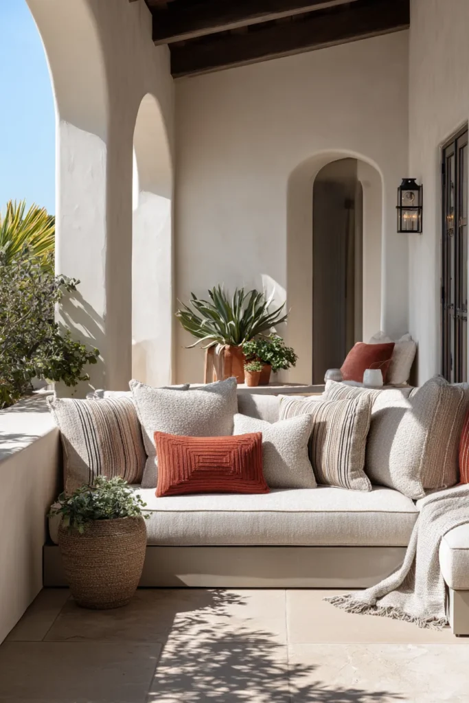 Designer’s Secret: Layer outdoor textiles using the “3-2-1 color rule”: three neutral shades, two accent colors, one pattern. This formula prevents the chaotic “souvenir shop” aesthetic while providing enough visual interest to photograph well. For 2026, specify your three neutrals in different surface textures—smooth solution-dyed acrylic, nubby outdoor bouclé, and waffle-weave—to create depth without relying on color contrast.