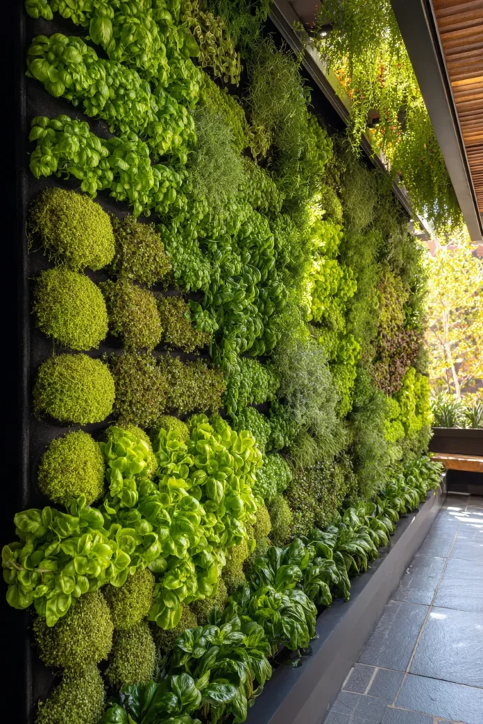 Wall-mounted growing systems achieve 40 plants per square meter density—transforming a single vertical surface into productive kitchen garden space that yields 12-15 kg of leafy greens, herbs, and compact vegetables annually while occupying zero floor area.