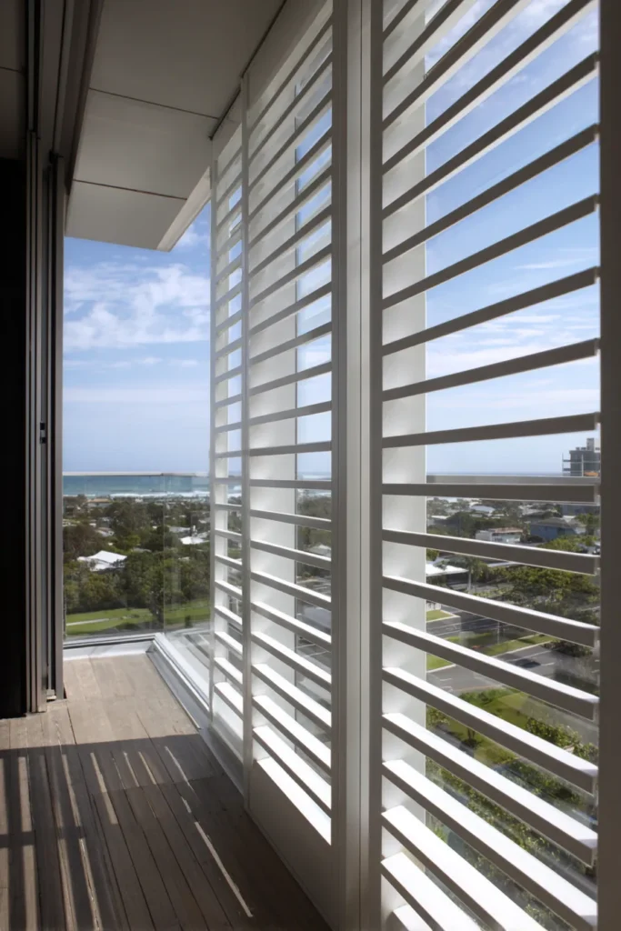 The mechanical sophistication rivals interior plantation shutters. Individual louvers pivot on stainless steel pins, allowing users to modulate privacy from 20% (fully open, maintaining views) to 95% (closed, blocking sightlines) while always permitting airflow through the blade gaps. Specify 100mm wide blades in matte finishes; narrower profiles create a venetian blind aesthetic that reads as cheap, while gloss finishes produce glare.
