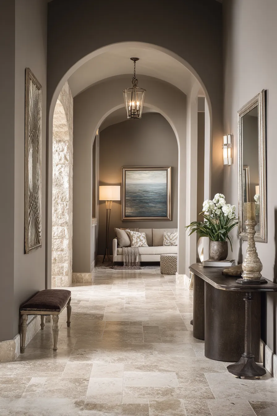 - Base color: ‘Greige’ (gray-beige hybrid) at LRV 45-50 as unifying hue