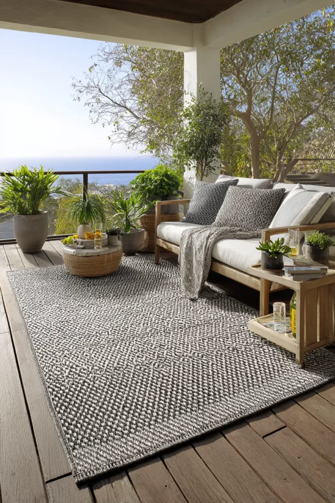 Best For: Those seeking defined spatial zones on expansive balconies. Anyone frustrated by indoor rug failures in outdoor applications.