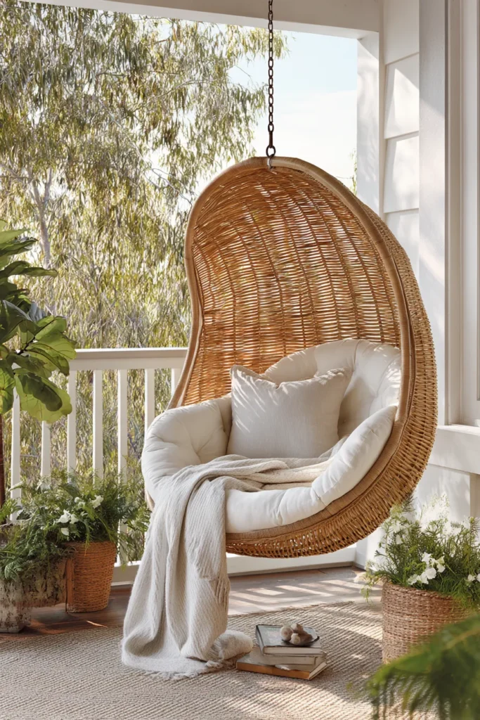 Apply the same suspended seating comfort principles from indoor reading nooks, adapted for weather exposure. For compact installations, reference small apartment reading nook spatial strategies.