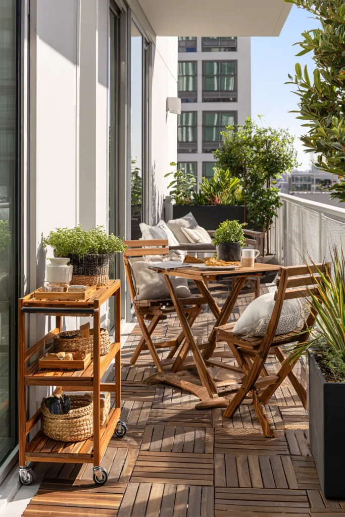 Best For: Compact balcony maximalists and those requiring seasonal storage solutions. Anyone applying small living room layout efficiency to outdoor zones.