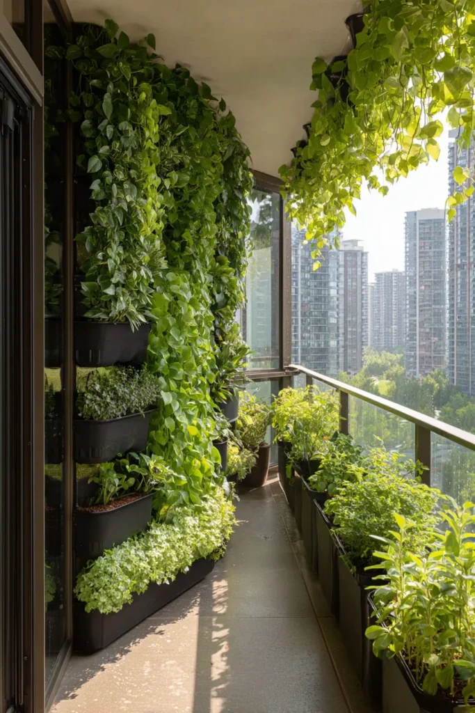 The era of floor-hogging planter clusters is ending. Vertical integration through modular garden wall systems solves three problems simultaneously: maximizes square footage, creates acoustic dampening (critical for high-rise balconies), and establishes a microclimate that reduces ambient temperature by 4-7°F through transpiration cooling.