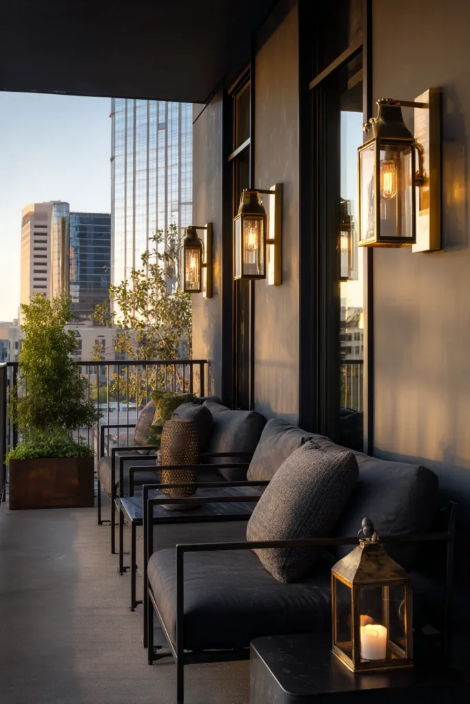 Coordinate metal finishes with your balcony railing design for architectural cohesion—if your railings are powder-coated black, your blackened steel elements create intentional continuity.