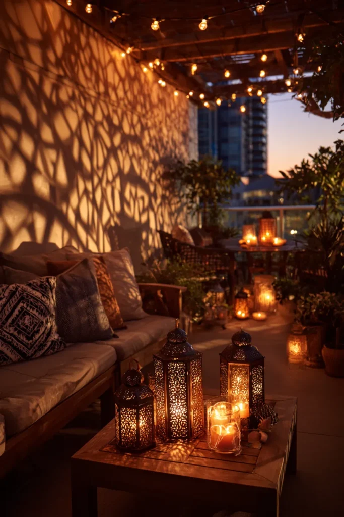 Designer’s Secret: String lights fail when spaced evenly. Instead, create deliberate “pools” of light with 24-36″ gaps between bulb clusters, then fill dark zones with Moroccan punched lanterns that diffuse light through geometric patterns. This layered approach prevents the “airport runway” effect and creates mysterious shadow play that makes spaces feel larger through implied depth.