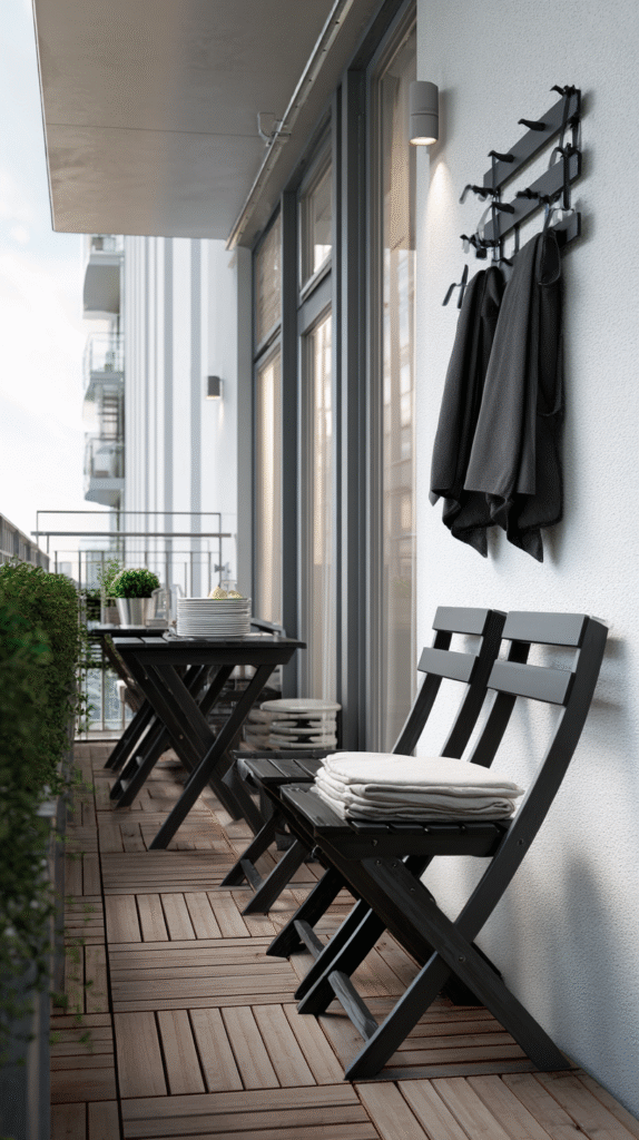 Space-saving furniture isn’t just practical—it’s essential for apartment balcony design. You need pieces that can adapt to different uses and disappear when you need more room.