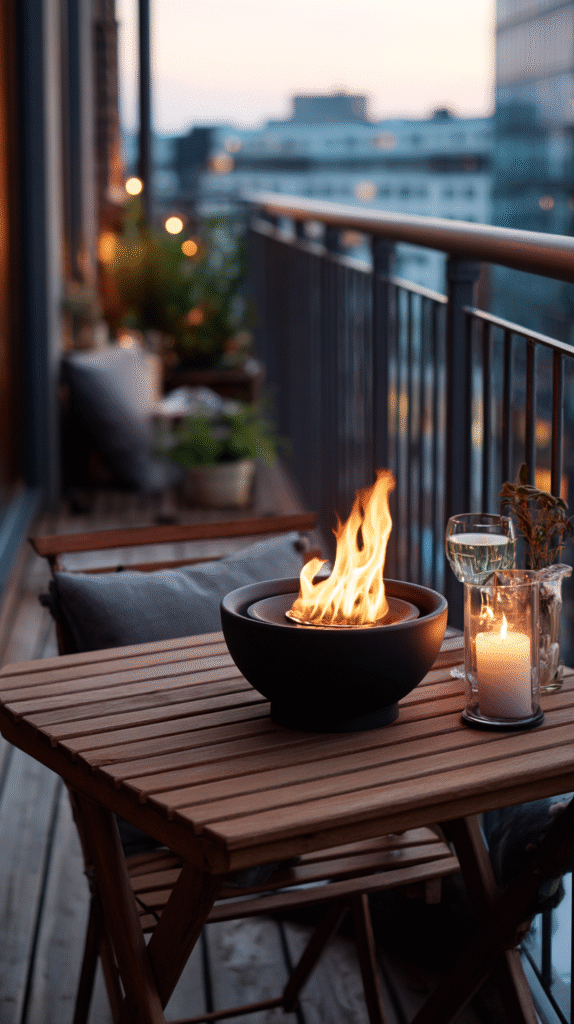 Okay, this one sounds fancy, but hear me out: portable fire features extend your balcony season into cooler months and create the coziest atmosphere imaginable.