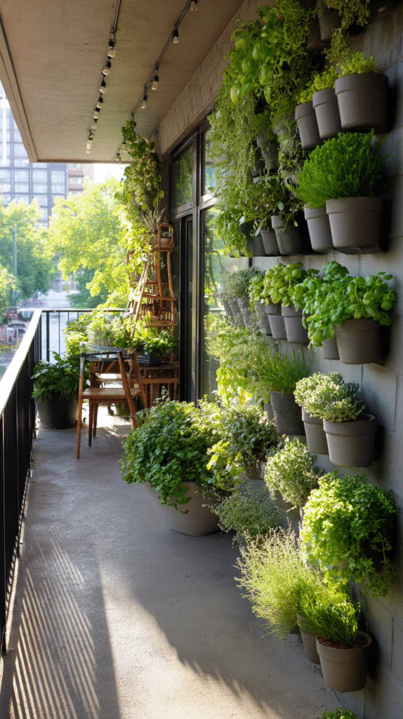 The best part? You can grow actual herbs and vegetables vertically, turning your balcony into a mini urban farm. Imagine stepping outside to snip fresh basil for your pasta or mint for your morning tea. That’s not just balcony design—that’s lifestyle upgrade territory. Start with easy plants like succulents, spider plants, or herbs if you’re new to this whole green thumb thing.