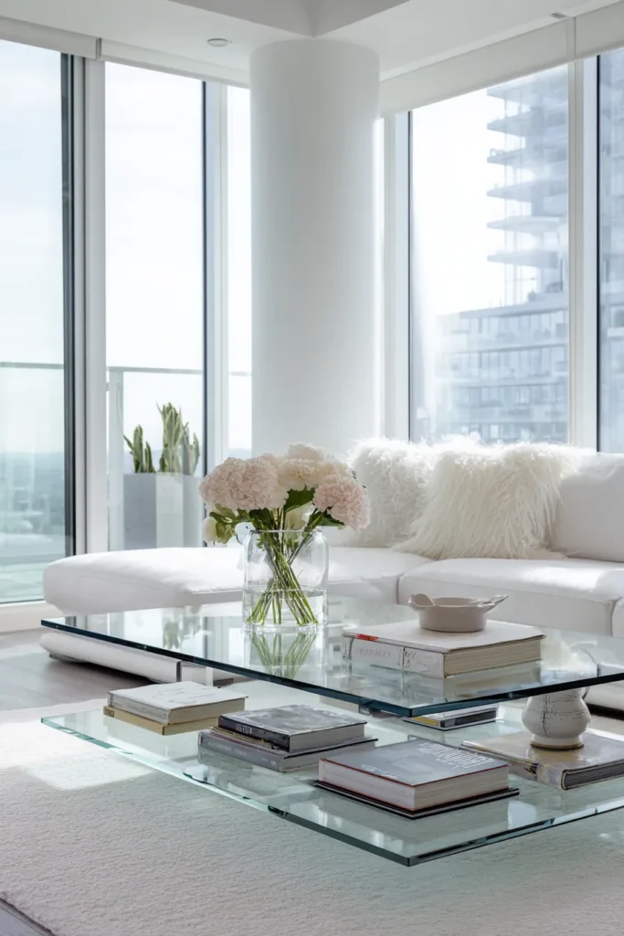 The psychological effect: rooms feel larger because sightlines penetrate through the table rather than stopping at an opaque surface, particularly valuable in compact living rooms.