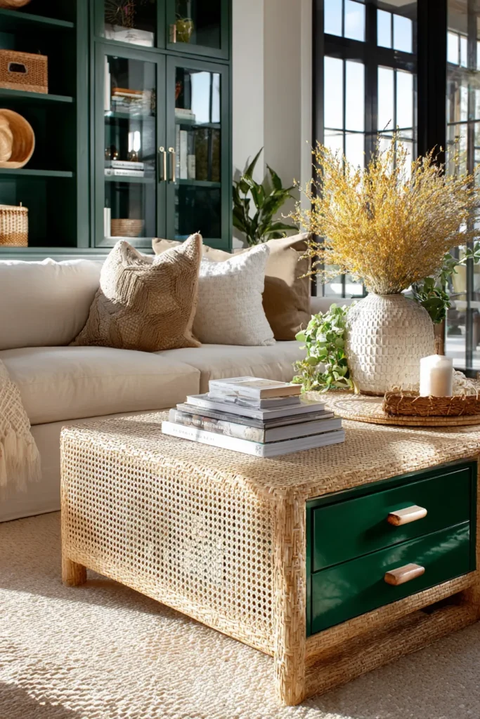 Designer’s Secret: Mix natural and lacquered rattan in a single piece. Use natural finish for the table frame to maintain organic authenticity, then lacquer only the storage drawer fronts in a bold accent color. This creates material hierarchy that prevents the “resort hotel” cliché.
