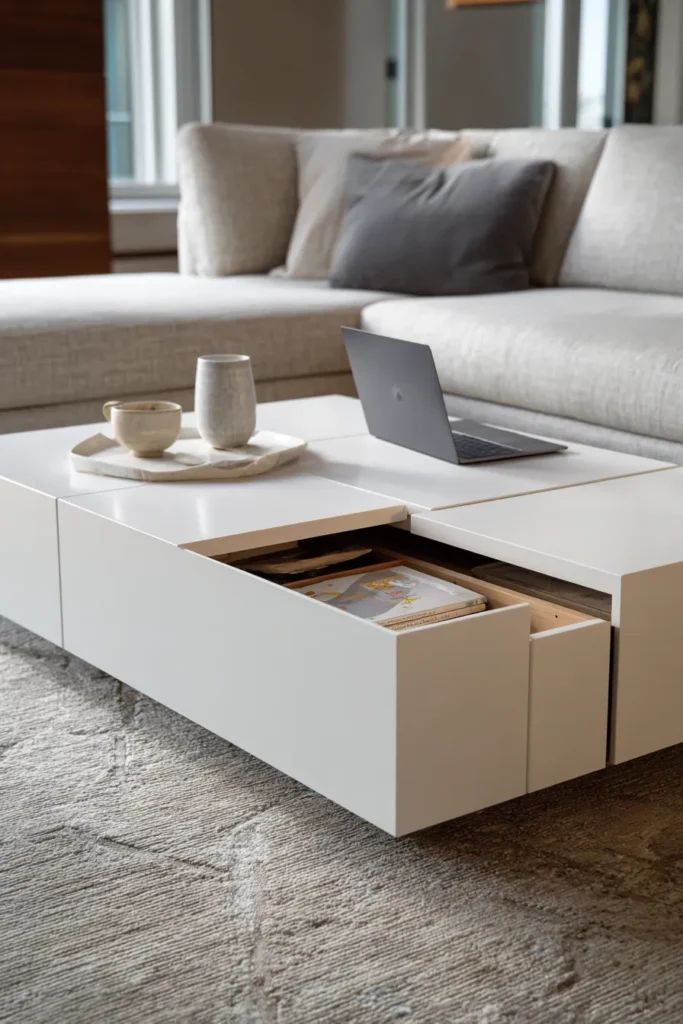 The most sophisticated 2026 coffee tables employ invisible drawer mechanisms where storage units appear to levitate within negative space, creating the optical illusion of defying gravity through precision-engineered undermount slides rated for 100-pound loads.
