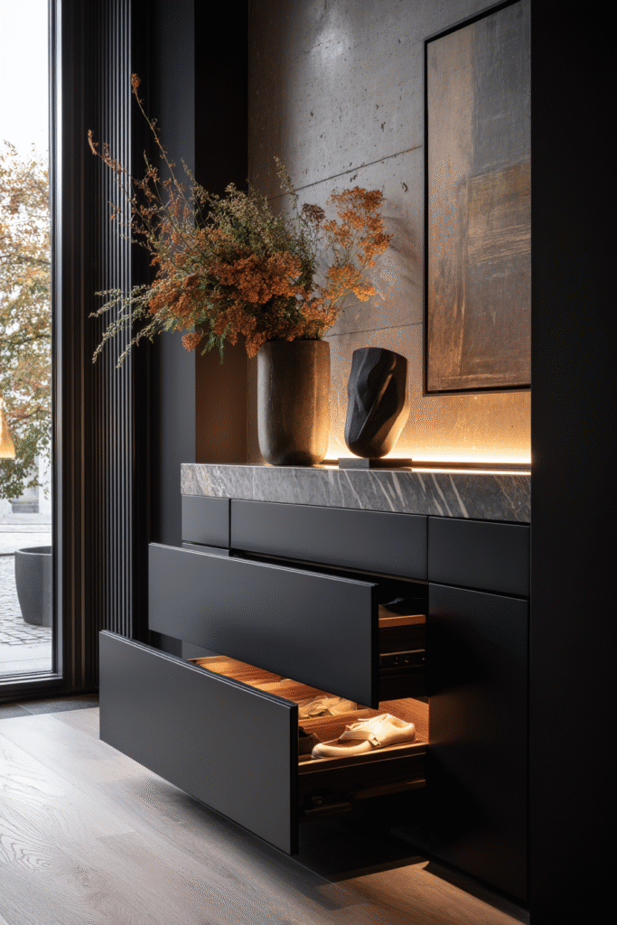 12. Hidden Shoe Drawer Cabinet in Matte Black