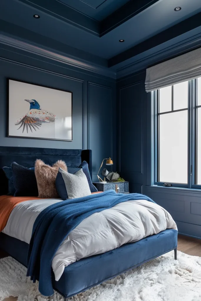 Best For: High-ceiling rooms (9+ feet) where darker overhead planes create intimacy, or nurseries where enveloping color promotes calm during sleep training.