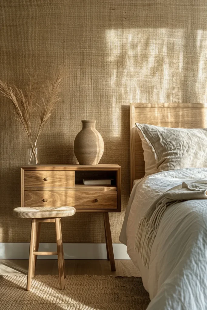 Authentic grasscloth—woven jute, sisal, or seagrass fibers laminated to paper backing—introduces organic texture and subtle color variation impossible to achieve with printed imitations. The material’s inherent irregularities (visible seams, color shifts between panels, slight weaving inconsistencies) constitute its luxury appeal rather than defects. This is critical for clients to understand: grasscloth celebrates natural imperfection.