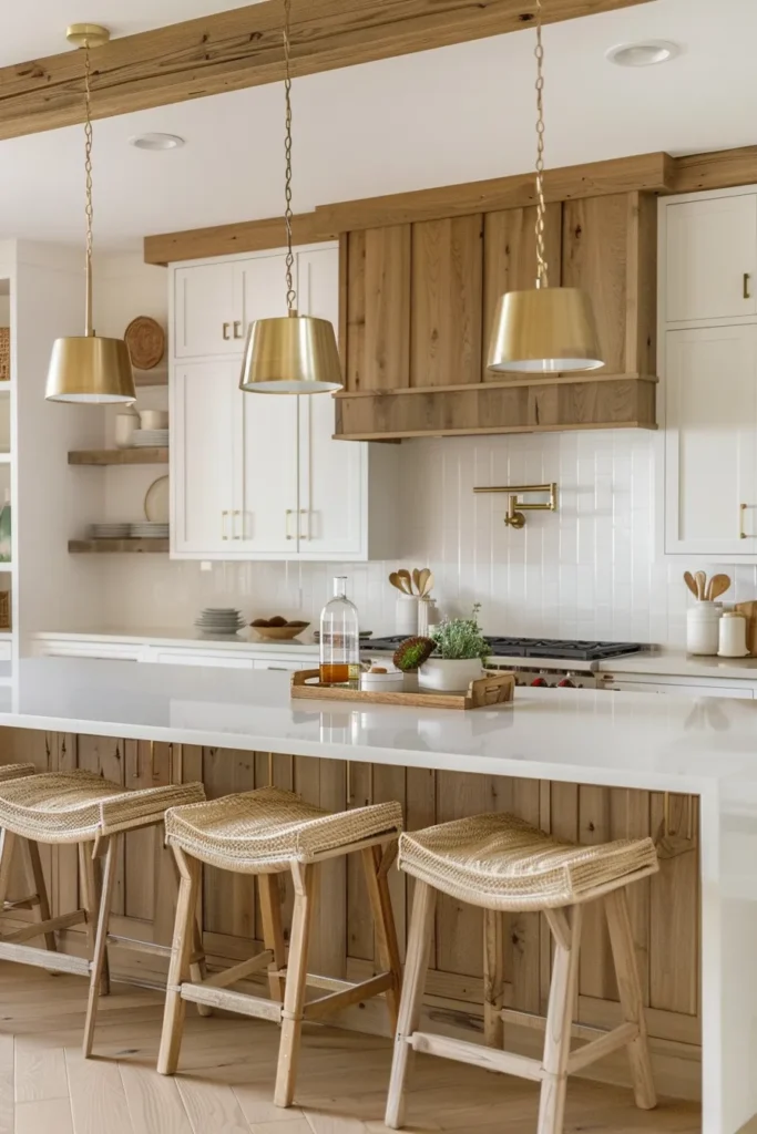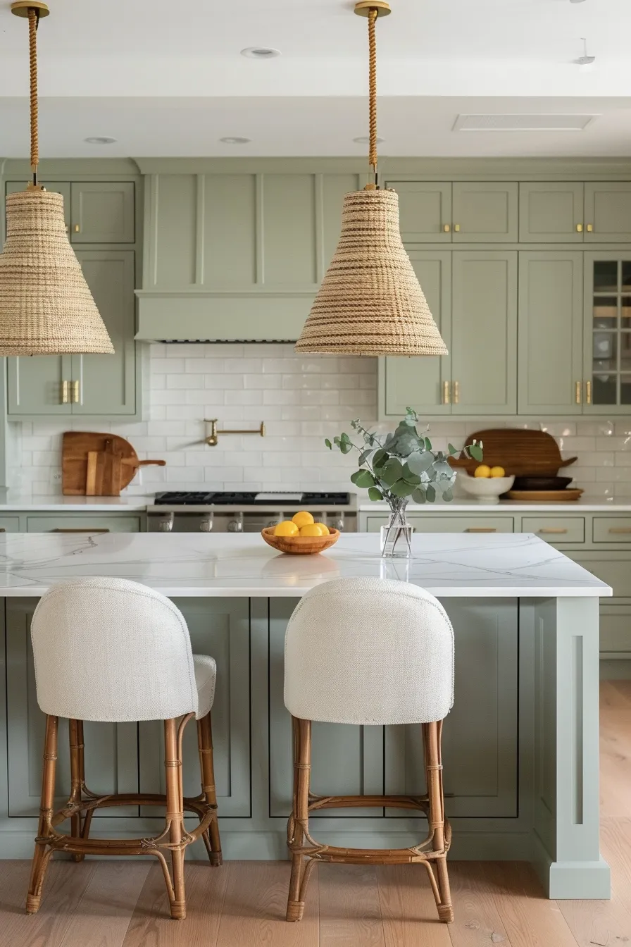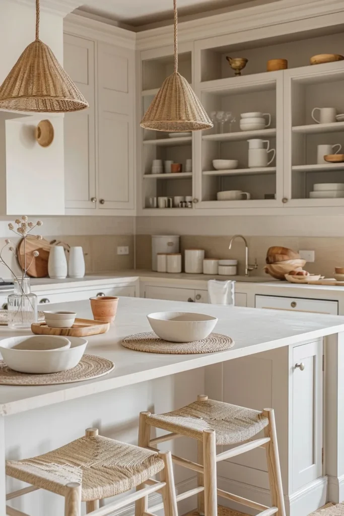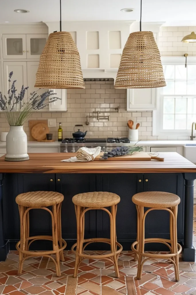 Wicker or rattan pendants are the secret weapon for instant hygge. They cast the most gorgeous warm, dappled light and add texture without visual noise. Hang two or three at slightly different heights over a longer island and the whole kitchen feels transformed. You can find beautiful rattan pendants on Amazon or at IKEA for well under $100 each. This is genuinely one of the highest-impact, lowest-cost changes you can make.
