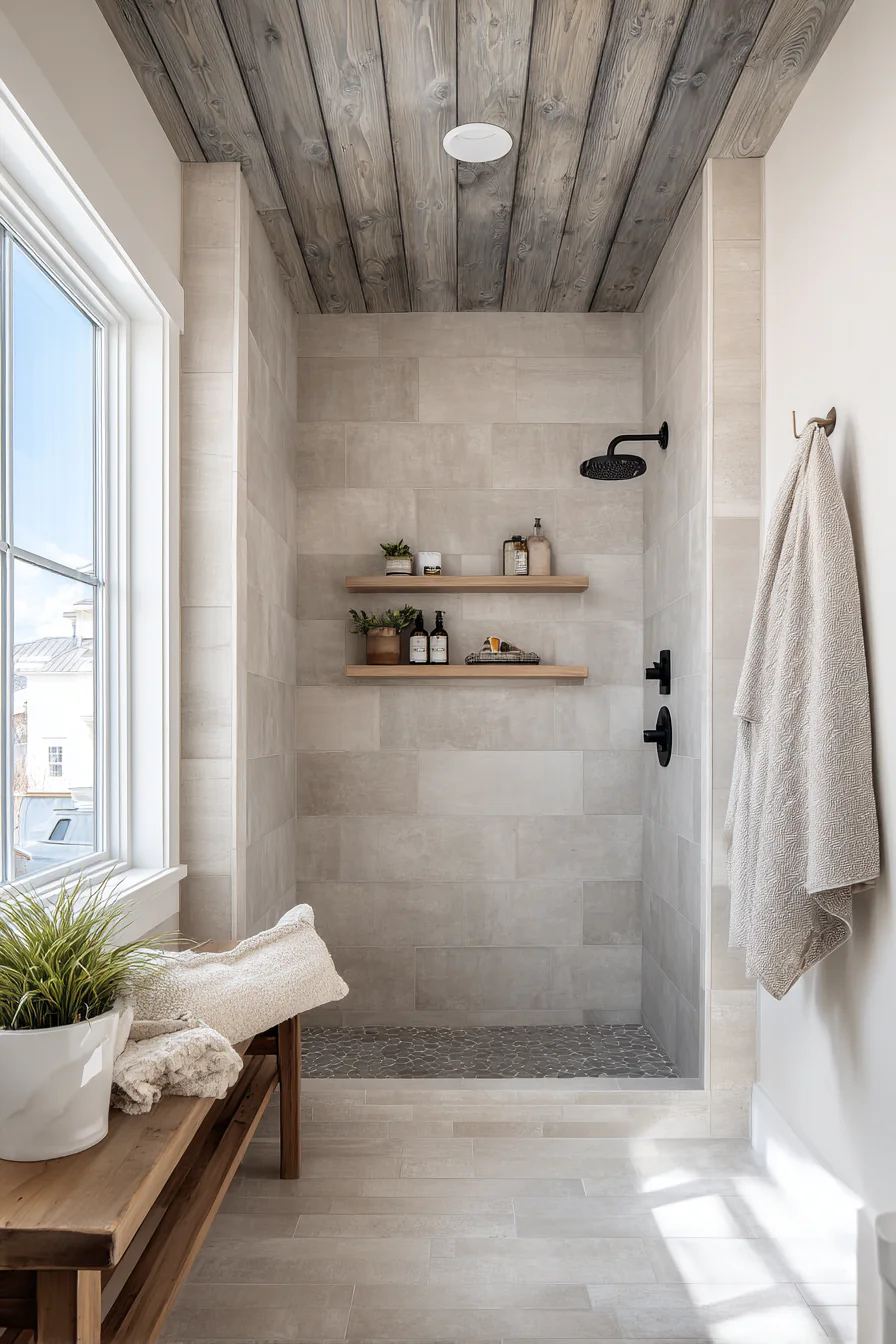 - Exposed wood beams or wood accent walls