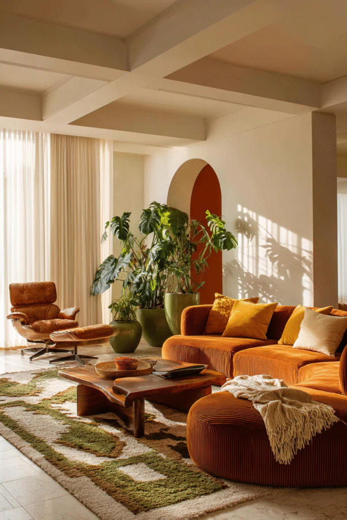 Let’s start with color because this is where 70s modern design really shines. Forget cool grays and whites—we’re talking warm, rich, earthy tones that make spaces feel cozy and inviting.