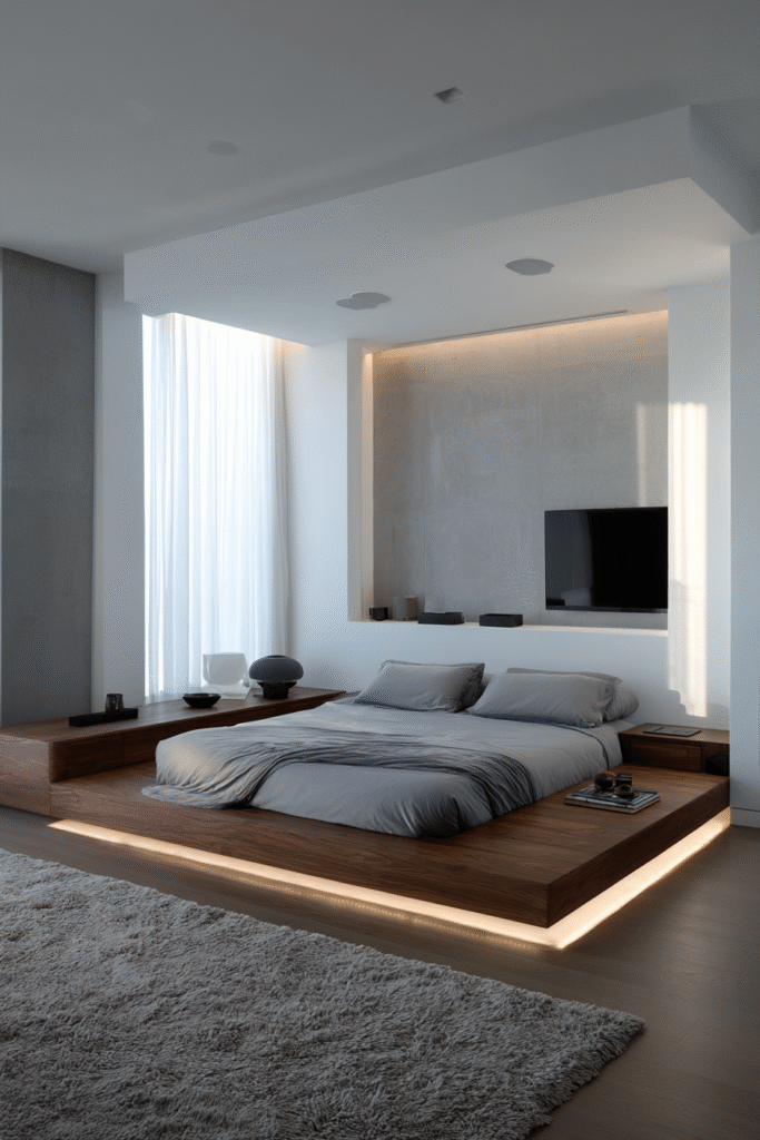 14. Smart Tech-Integrated Minimalist Bedroom: Invisible Technology
