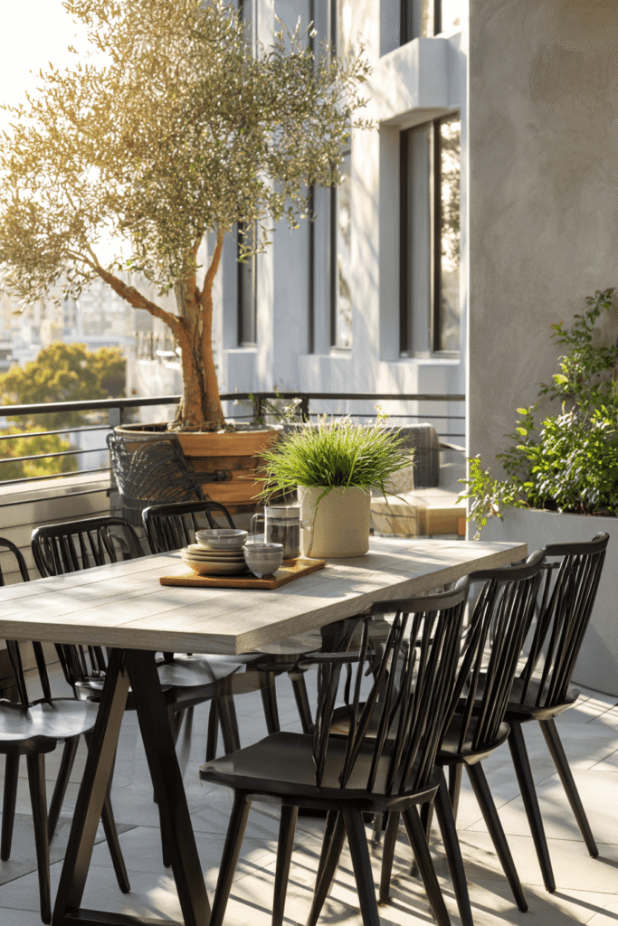 Prioritize multi-functional and spaceefficient pieces that maximize utility without overwhelming your footprint. Bistro sets, folding director’s chairs, and nesting tables deliver full functionality while maintaining flexibility—they can collapse, stack, or tuck away when you need to reclaim space. Choose furniture with vertical rather than horizontal emphasis (tall backs, pedestal tables) to draw the eye upward and create the illusion of more space. Opt for transparent materials like glass or mesh that maintain visual openness, and avoid bulky cushions or oversized pieces that crowd sightlines. Finally, consider dual-purpose furniture: storage ottomans, benches that tuck under tables, or modular pieces that rearrange based on whether you’re dining solo or hosting friends.