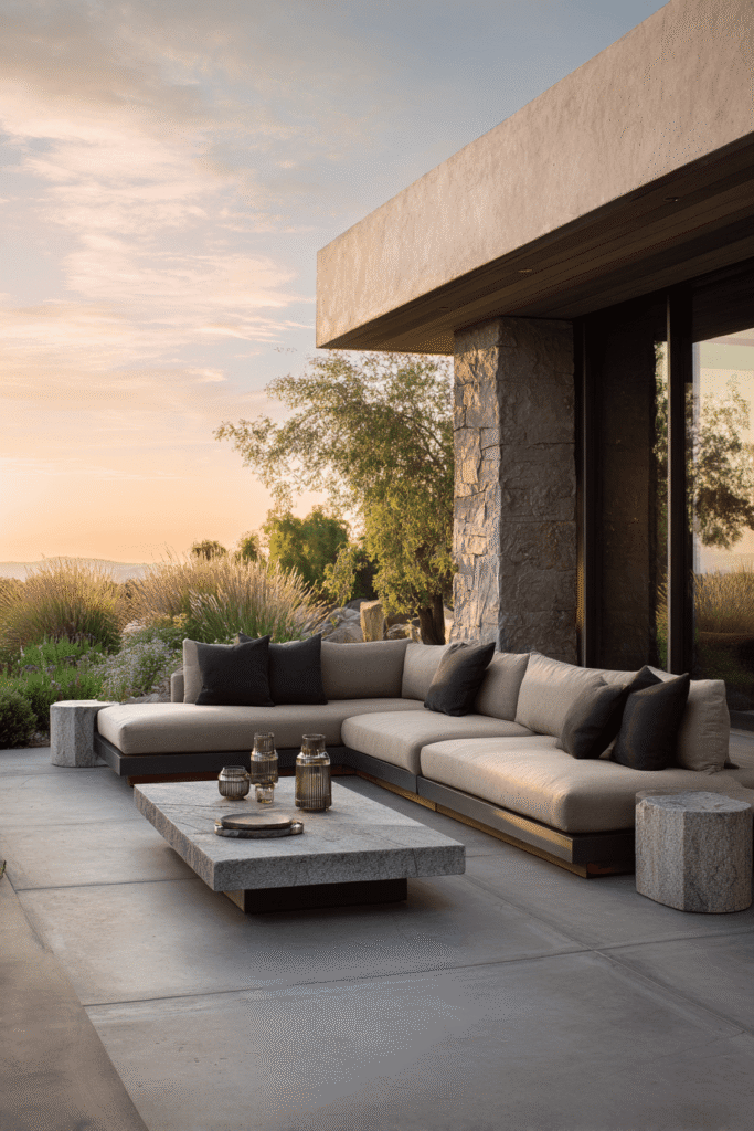 17. Mixed-Material Seating with Concrete and Cushion Pairing
