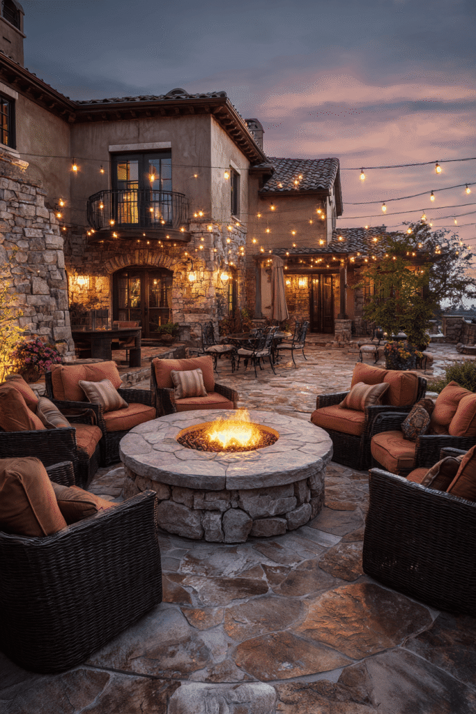 There’s primal magic in gathering around fire, and a dedicated fire pit seating arrangement taps into that ancient pull while delivering modern comfort. Imagine curved benches or individual chairs arranged in a circle or semicircle around a central fire feature—whether wood-burning, gas, or propane. The arrangement naturally encourages face-to-face conversation, storytelling, and the kind of lingering that happens when flames and starlight take over from daylight.