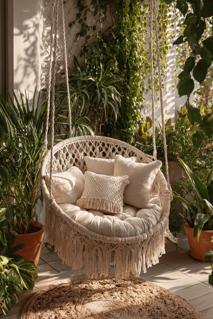 Few pieces deliver instant vacation vibes quite like a hanging swing chair—whether egg-shaped, hammock-style, or macramé cocoon. Picture a suspended seat swaying gently in the breeze, cushioned with plush pillows, positioned in a sunny corner or shaded nook. This is furniture that invites total relaxation: reading, daydreaming, or simply swaying while sipping morning coffee. The suspension creates movement that feels meditative, while the enveloping shape provides cozy refuge.