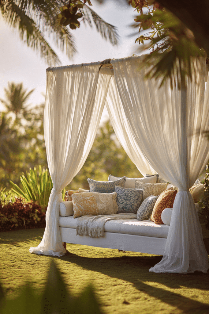 Take the classic porch swing and supersized it into a full bed—you’ve got the ultimate relaxation piece that channels coastal, Southern, or cottage aesthetics. Picture a twin or full-size mattress suspended from heavy-duty chains or rope, cushioned with weather-resistant padding, and dressed with layers of outdoor pillows. This is furniture that transforms porches or covered patios into dreamy retreats where afternoon naps, evening stargazing, or morning coffee become elevated experiences.