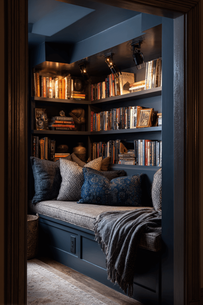 - Paint interior walls in a cozy, enveloping color—deep navy, forest green, or warm terracotta