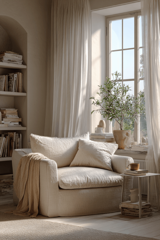 - Layer sheer curtains with blackout panels to control brightness and create reading flexibility
