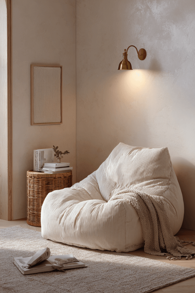 - Include a cozy throw blanket draped over the bean bag for temperature control