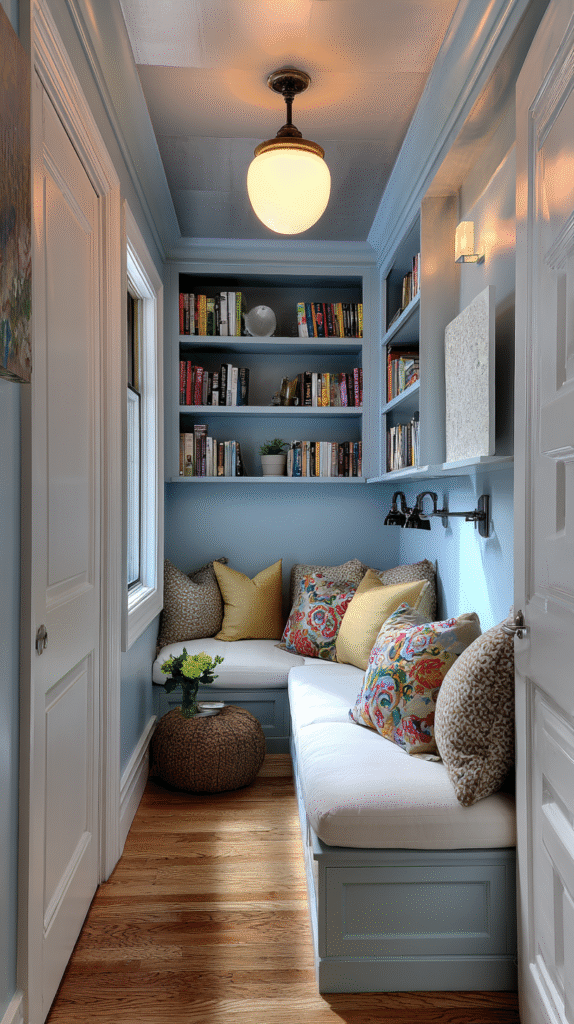 Let’s start with the dream scenario: a window seat reading nook. If you’ve got a window with decent natural light, you’re halfway there already. Add a custom cushion or layer a few throw pillows for comfort, install some floating shelves on either side for book storage, and boom—you’ve got yourself a storybook-perfect reading room.