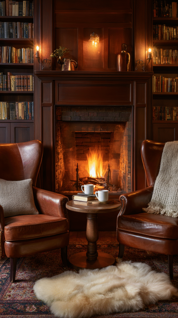 12. The Fireplace Reading Nook (The Ultimate Cozy Factor)