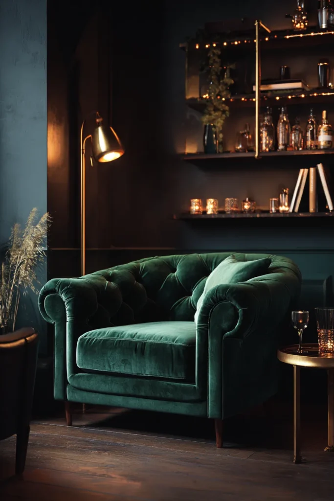 - Select a velvet armchair in a jewel tone or rich neutral that complements your existing palette