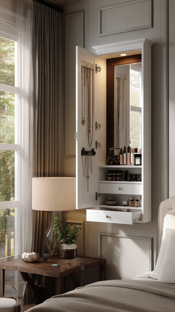 11. Compact Wall-Mounted Jewelry Armoire Vanity