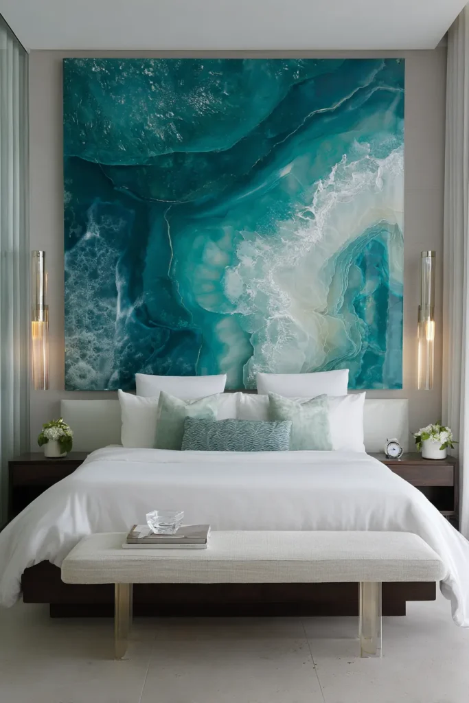 Best For: Coastal bedrooms, modern spaces with minimal color elsewhere, and anyone wanting original art without commissioning a painter (resin artists: $600-1800 for custom work).