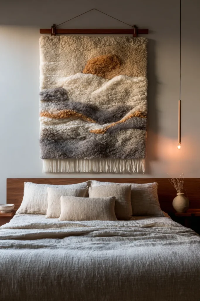Best For: Bedrooms with minimal textural variety, spaces dominated by smooth surfaces (painted drywall, glass, metal), and anyone seeking handmade authenticity over mass production.